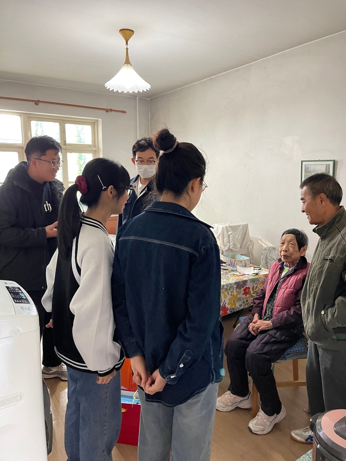 10月23日上午,青年志愿者们带着牛奶、鸡蛋等慰问品前往老人们的住所,与老人们亲切交谈,了解他们的生活状况和身体情况,并表达了诚挚的祝福。